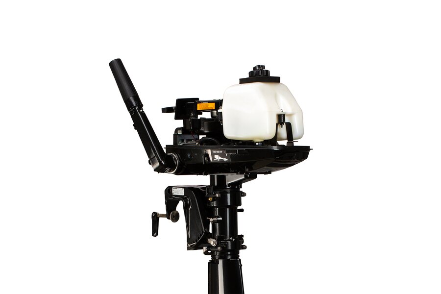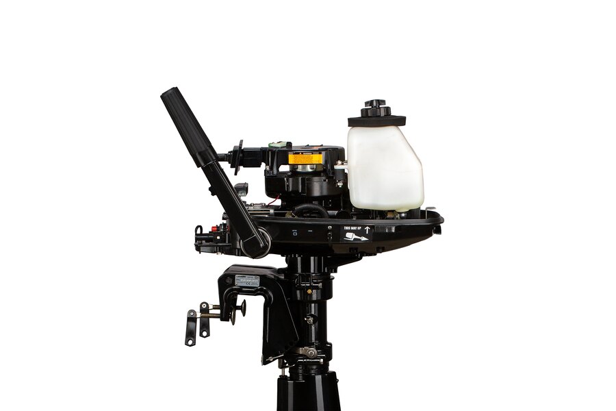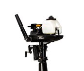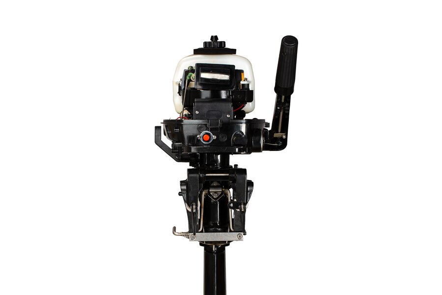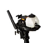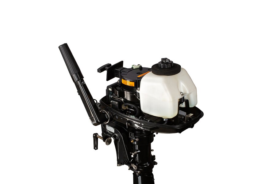 Мотор запускается ручным стартером, а управляется стандартным румпелем с поворотной ручкой газа (гашеткой мотоциклетного типа) с антипроскальзывающими насечками.