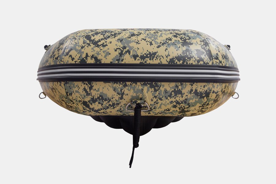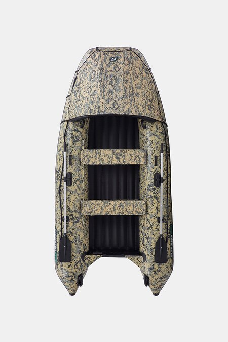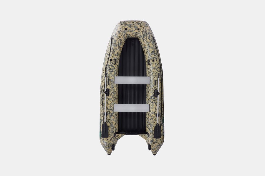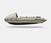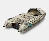Трехместная килевая моторная лодка GLADIATOR E350PRO камуфляжного цвета со стационарным транцем под мотор до 15 л.с.