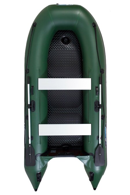 Четырехместная килевая моторная лодка GLADIATOR B330AD зеленого цвета со стационарным транцем под мотор до 15 л.с.