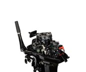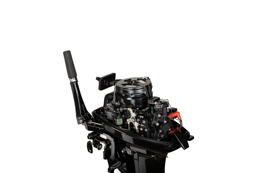 Мотор запускается ручным стартером, а управляется стандартным румпелем с поворотной ручкой газа (гашеткой мотоциклетного типа) с