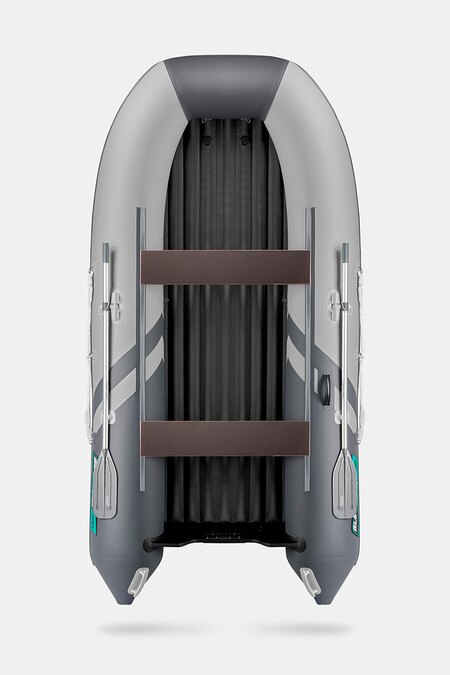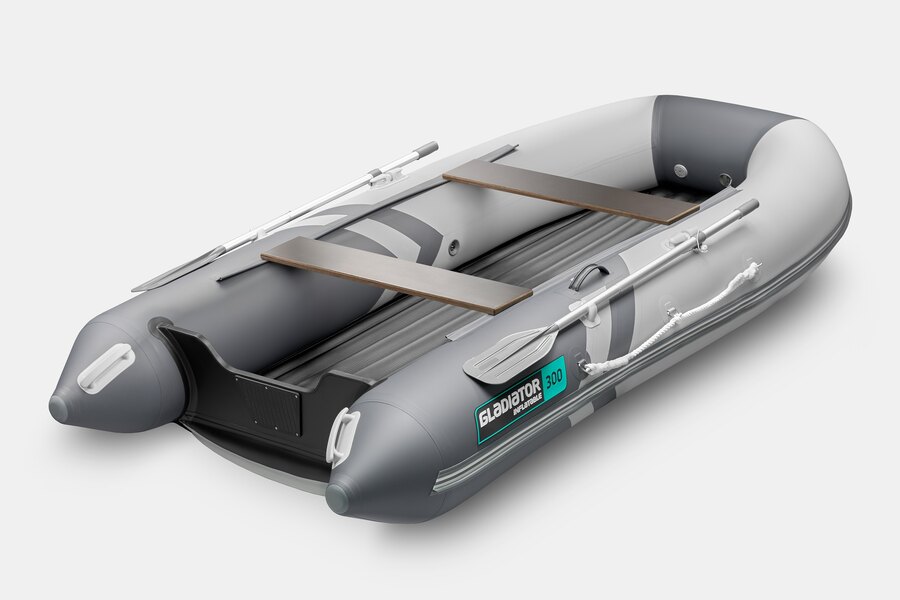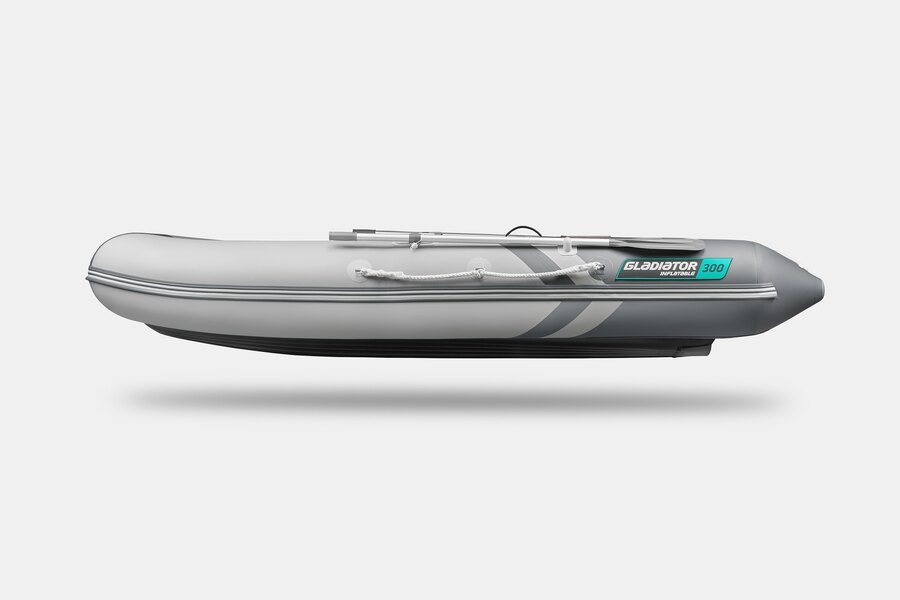 Трехместная килевая моторная лодка GLADIATOR E300S светло/темно-серого цвета со стационарным транцем под мотор до 9.8 л.с.