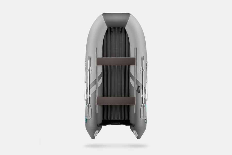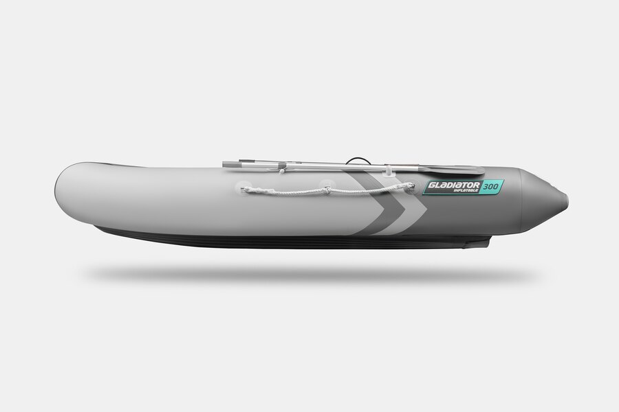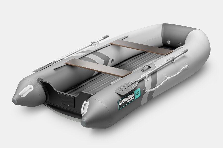 Трехместная килевая моторная лодка GLADIATOR E300SL светло/темно-серого цвета со стационарным транцем под мотор до 9.8 л.с.
