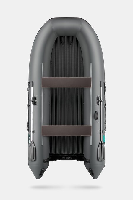 Трехместная килевая моторная лодка GLADIATOR E330S светло/темно-серого цвета со стационарным транцем под мотор до 10 л.с.