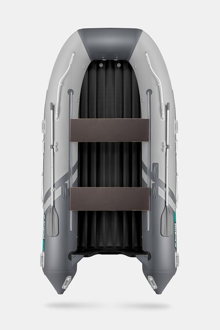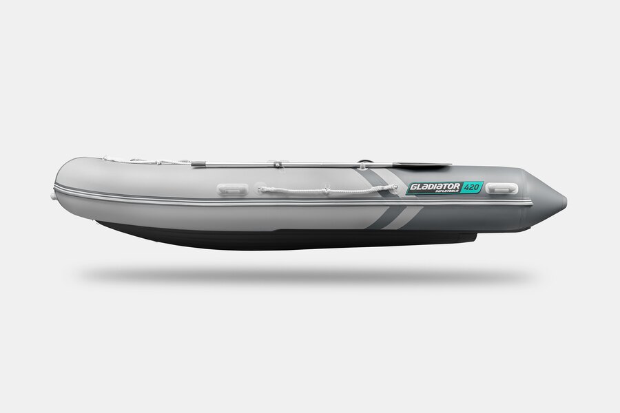 Пятиместная килевая моторная лодка GLADIATOR E420S светло/темно-серого цвета со стационарным транцем под мотор до 40 л.с.