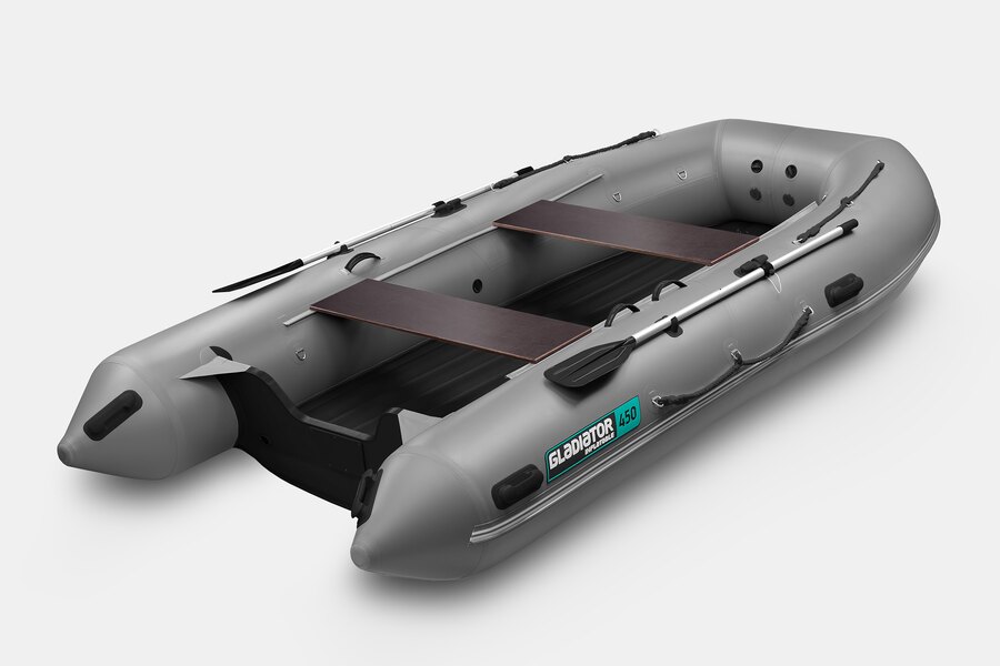 Используемый для лодок GLADIATOR материал состоит из пятислойного армированного ПВХ. Данный материал представляет собой синтетическую плетеную основу с полимерным покрытием, а использование композиционного поливинилхлорида и пластифицирующих добавок обеспечивает высокую прочность и устойчивость к порезам и проколам. Швы выполнены по уникальной технологии — каждый шов собран «внахлест», прошит и проклеен специальным клеем для ПВХ изделий. Каждый шов усилен проклейкой в четыре слоя из полос специальной ткани для придания швам эластичности, максимальной прочности и долговечности.