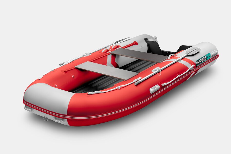 Используемый для лодок GLADIATOR материал состоит из пятислойного армированного ПВХ. Данный материал представляет собой синтетическую плетеную основу с полимерным покрытием, а использование композиционного поливинилхлорида и пластифицирующих добавок обеспечивает высокую прочность и устойчивость к порезам и проколам. Швы выполнены по уникальной технологии — каждый шов собран «внахлест», прошит и проклеен специальным клеем для ПВХ изделий. Каждый шов усилен проклейкой в четыре слоя из полос специальной ткани для придания швам эластичности, максимальной прочности и долговечности.
