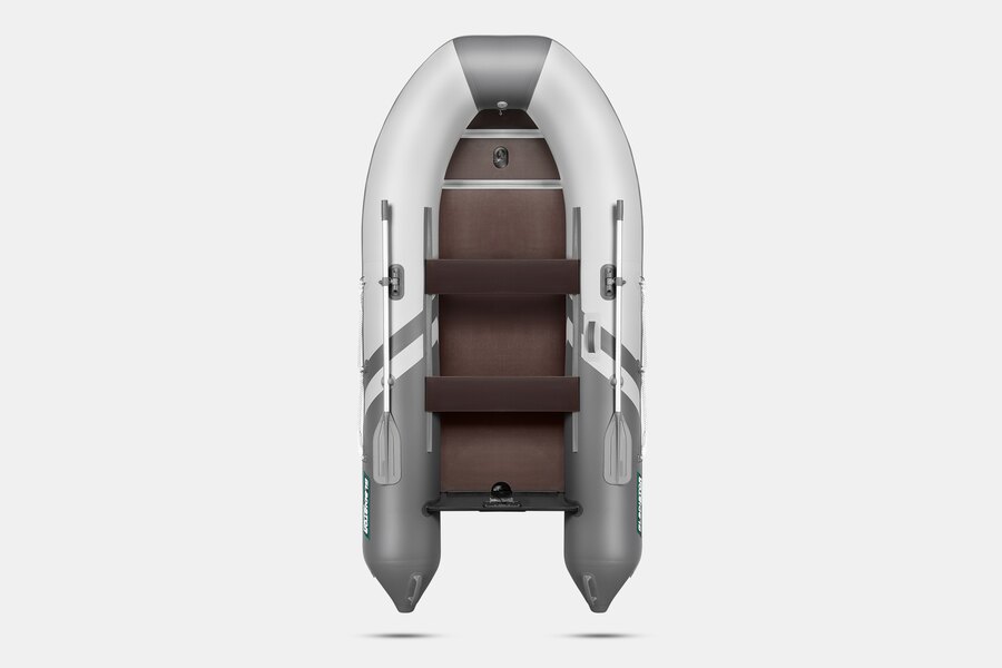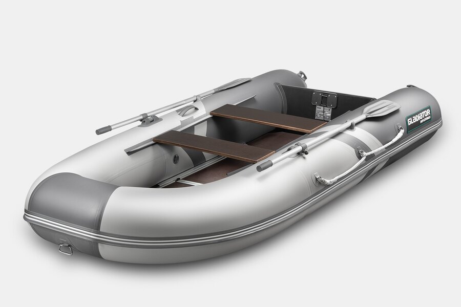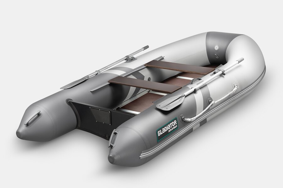 Четырехместная килевая моторная лодка GLADIATOR B330 светло/темно-серого цвета со стационарным транцем под мотор до 15 л.с.