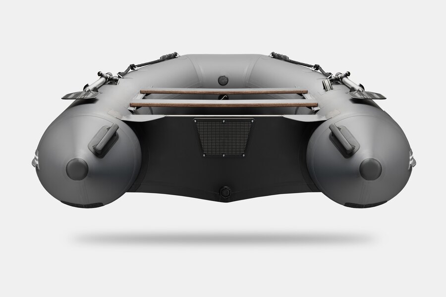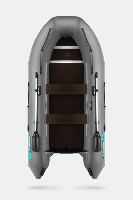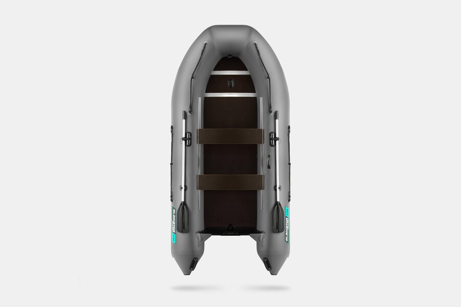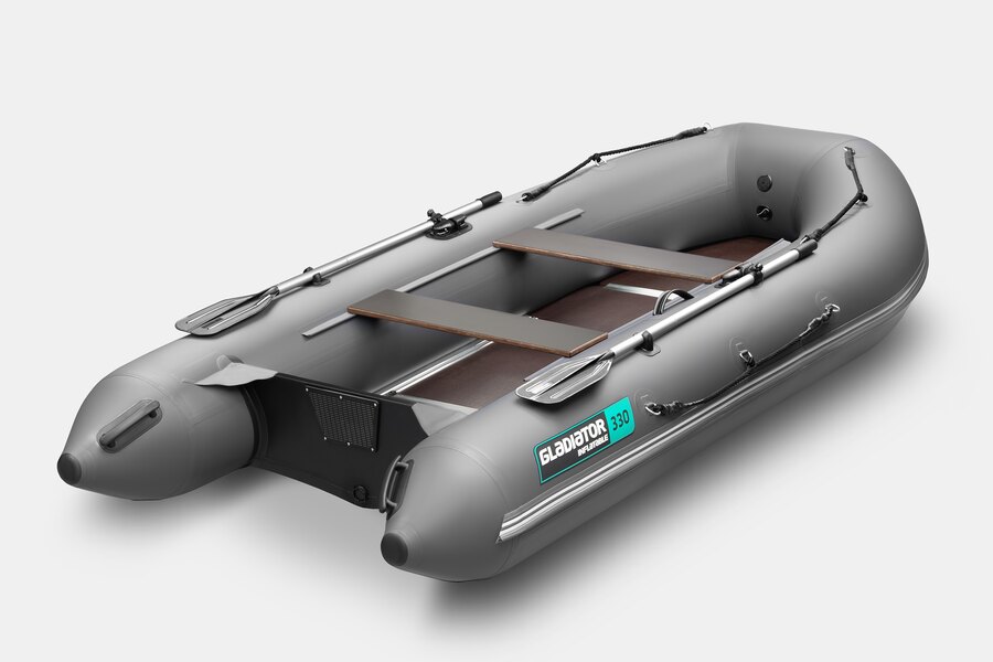 Четырехместная килевая моторная лодка GLADIATOR B330 темно-серого цвета со стационарным транцем под мотор до 15 л.с.