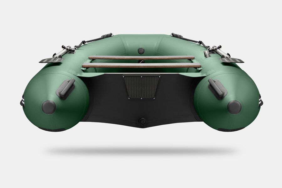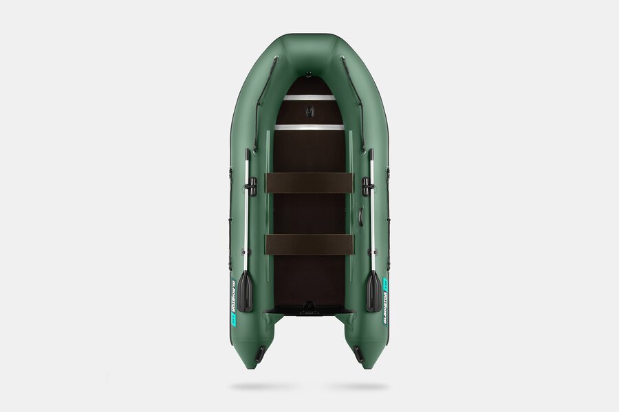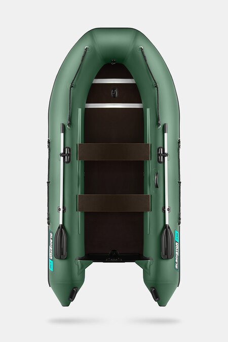 Четырехместная килевая моторная лодка GLADIATOR B330 зеленого цвета со стационарным транцем под мотор до 15 л.с.
