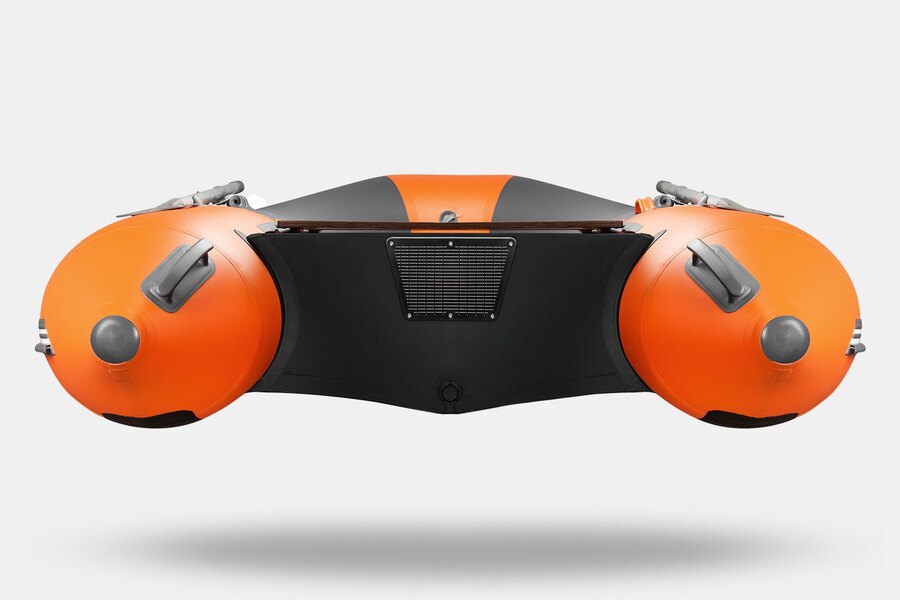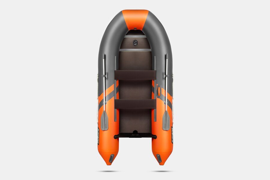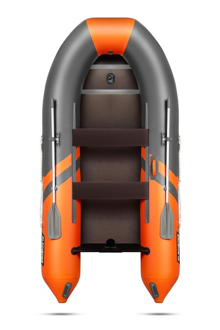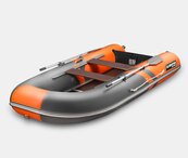 Четырехместная килевая моторная лодка GLADIATOR B330 оранжево-темносерого цвета со стационарным транцем под мотор до 15 л.с.