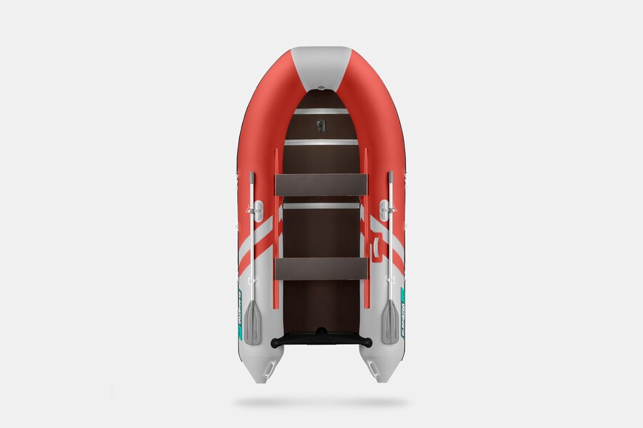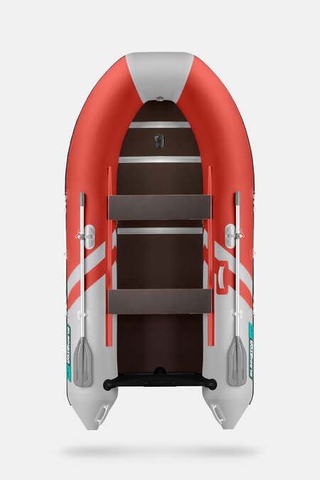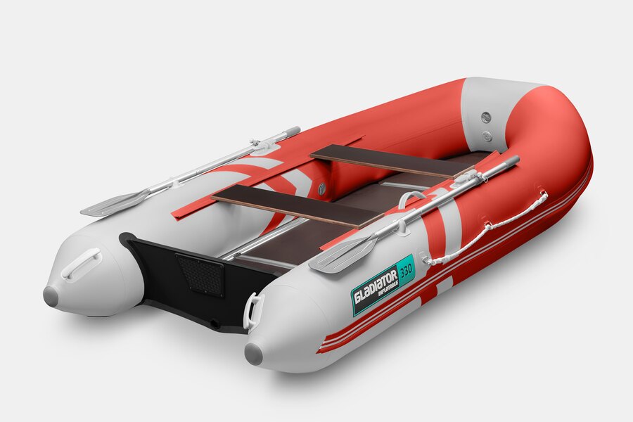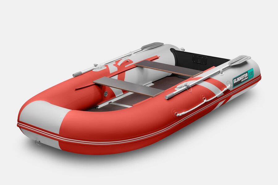 Четырехместная килевая моторная лодка GLADIATOR B330 красно-белого цвета со стационарным транцем под мотор до 15 л.с.