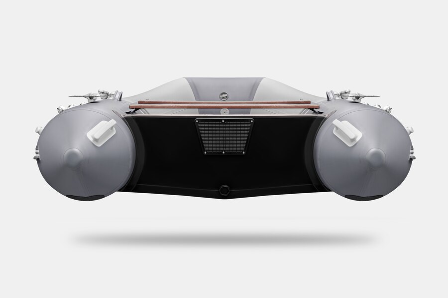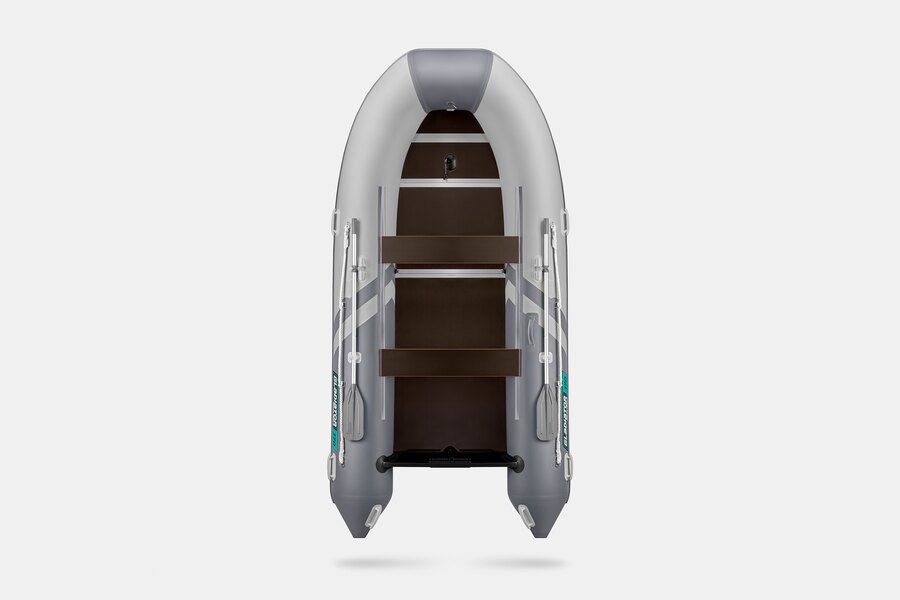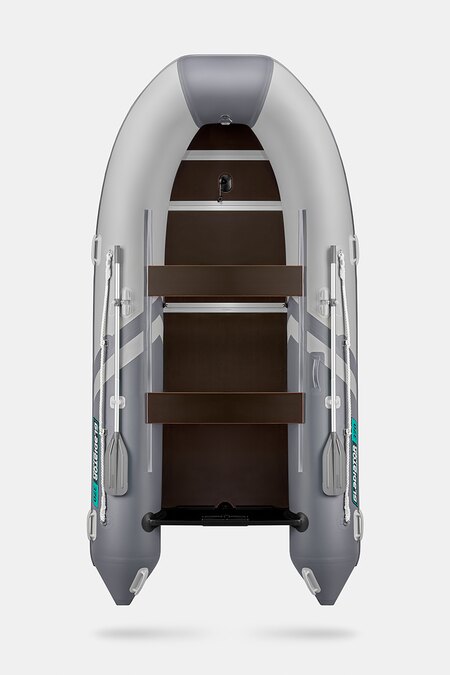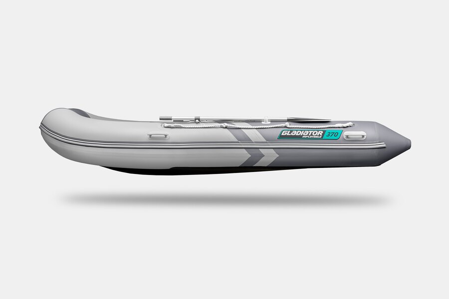 Пятиместная килевая моторная лодка GLADIATOR B370 светло/темно-серого цвета со стационарным транцем под мотор до 30 л.с.