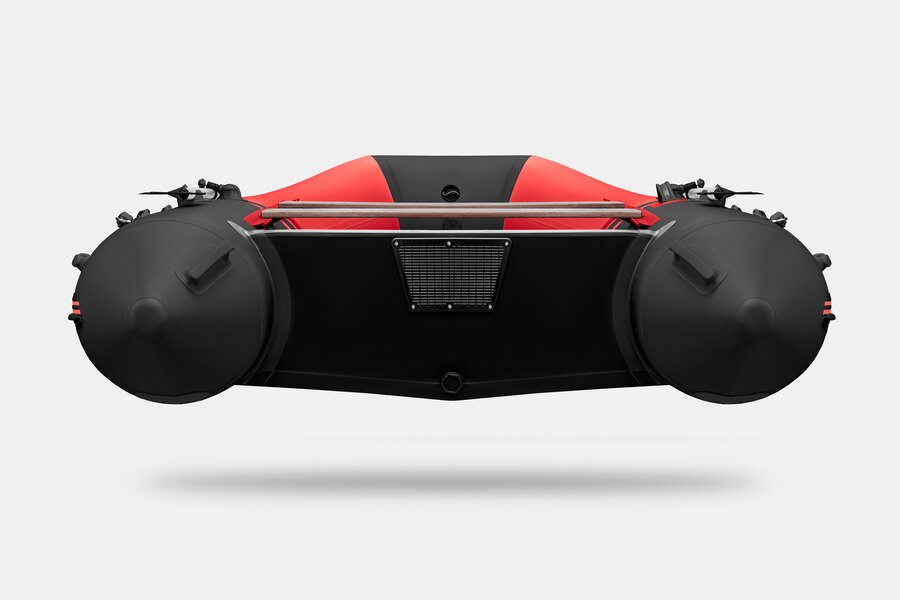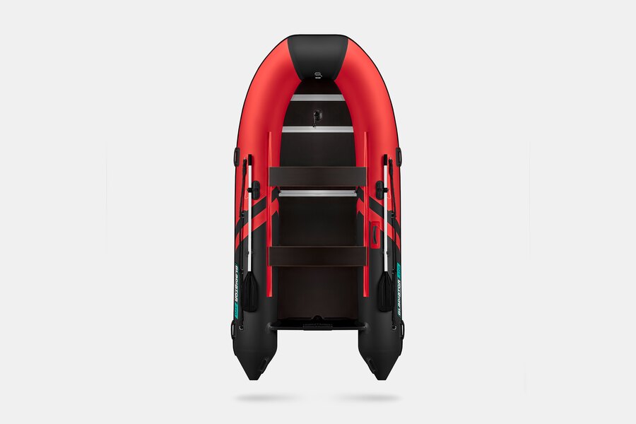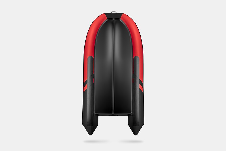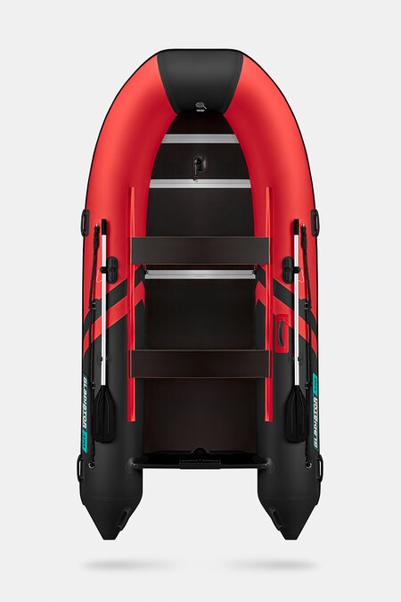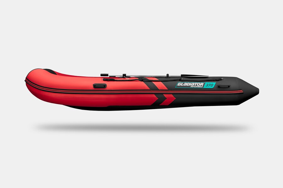 Пятиместная килевая моторная лодка GLADIATOR B370 красно-черного цвета со стационарным транцем под мотор до 30 л.с.