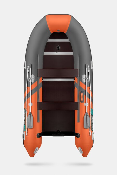 Пятиместная килевая моторная лодка GLADIATOR B370 соранжево-темносерого цвета со стационарным транцем под мотор до 30 л.с.