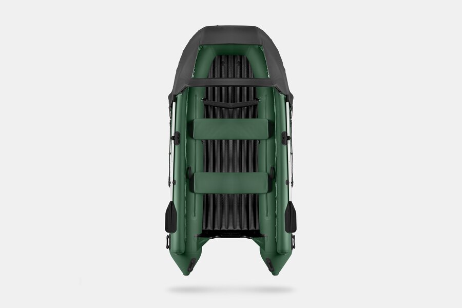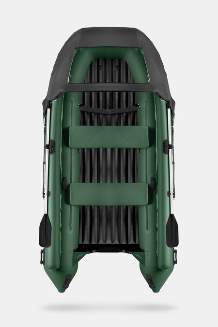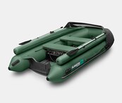 Пятиместная килевая моторная лодка GLADIATOR E380X зеленого цвета со стационарным транцем под мотор до 30 л.с.