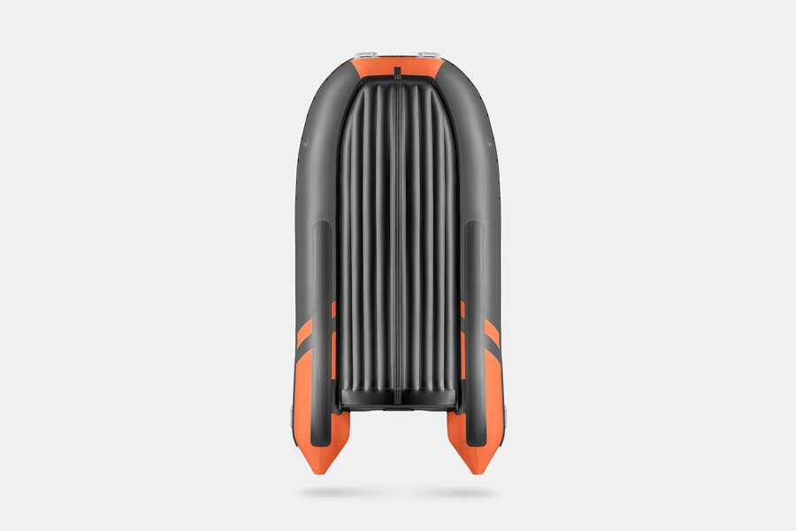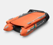 Пятиместная килевая моторная лодка GLADIATOR E380X оранжево-темносерого цвета со стационарным транцем под мотор до 30 л.с.