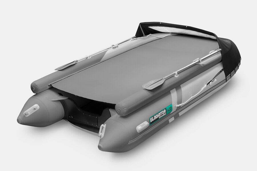 Используемый для лодок GLADIATOR материал состоит из пятислойного армированного ПВХ. Данный материал представляет собой синтетическую плетеную основу с полимерным покрытием, а использование композиционного поливинилхлорида и пластифицирующих добавок обеспечивает высокую прочность и устойчивость к порезам и проколам. Швы выполнены по уникальной технологии — каждый шов собран «внахлест», прошит и проклеен специальным клеем для ПВХ изделий. Каждый шов усилен проклейкой в четыре слоя из полос специальной ткани для придания швам эластичности, максимальной прочности и долговечности.