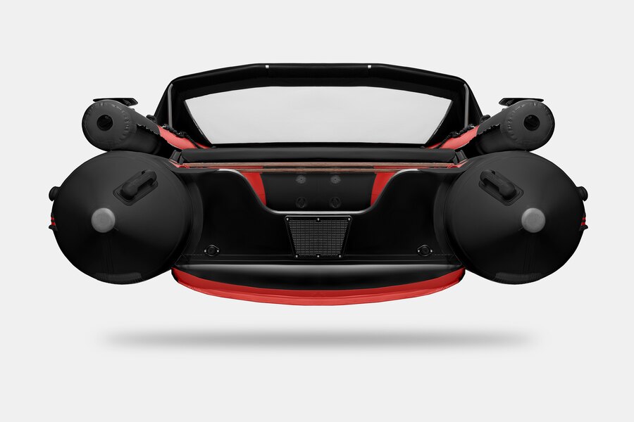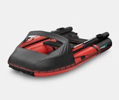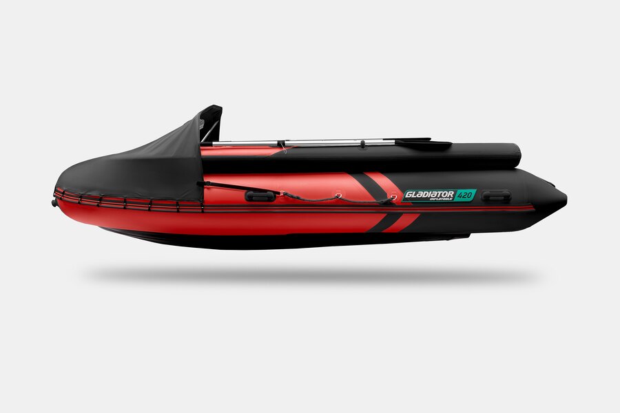 Шестиместная килевая моторная лодка GLADIATOR E420X красно-черного цвета со стационарным транцем под мотор до 40 л.с.