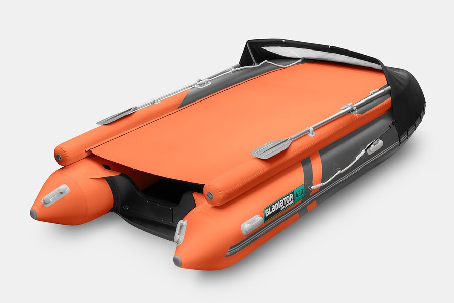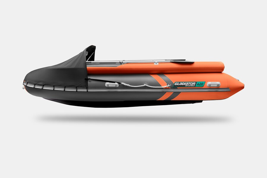 Используемый для лодок GLADIATOR материал состоит из пятислойного армированного ПВХ. Данный материал представляет собой синтетическую плетеную основу с полимерным покрытием, а использование композиционного поливинилхлорида и пластифицирующих добавок обеспечивает высокую прочность и устойчивость к порезам и проколам. Швы выполнены по уникальной технологии — каждый шов собран «внахлест», прошит и проклеен специальным клеем для ПВХ изделий. Каждый шов усилен проклейкой в четыре слоя из полос специальной ткани для придания швам эластичности, максимальной прочности и долговечности.