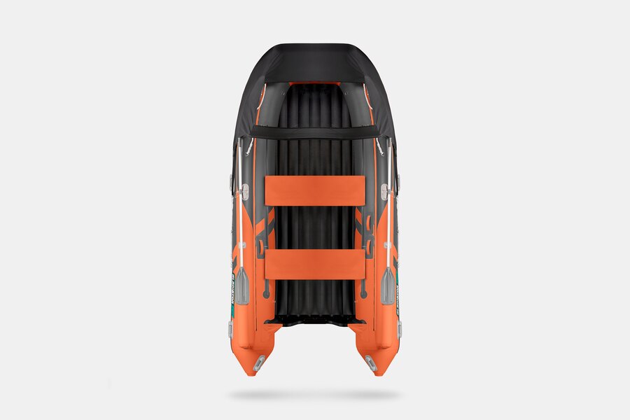 Шестиместная килевая моторная лодка GLADIATOR E420X оранжево-темносерого цвета со стационарным транцем под мотор до 40 л.с.