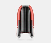 Шестиместная килевая моторная лодка GLADIATOR E420X красно-белого цвета со стационарным транцем под мотор до 40 л.с.