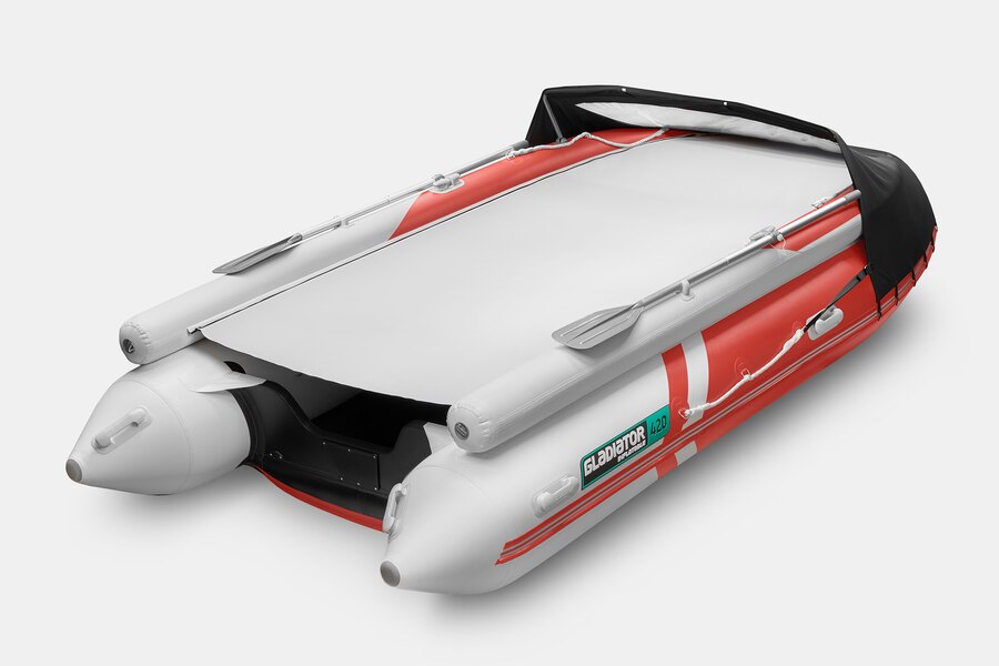 Используемый для лодок GLADIATOR материал состоит из пятислойного армированного ПВХ. Данный материал представляет собой синтетическую плетеную основу с полимерным покрытием, а использование композиционного поливинилхлорида и пластифицирующих добавок обеспечивает высокую прочность и устойчивость к порезам и проколам. Швы выполнены по уникальной технологии — каждый шов собран «внахлест», прошит и проклеен специальным клеем для ПВХ изделий. Каждый шов усилен проклейкой в четыре слоя из полос специальной ткани для придания швам эластичности, максимальной прочности и долговечности.