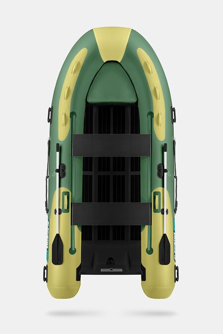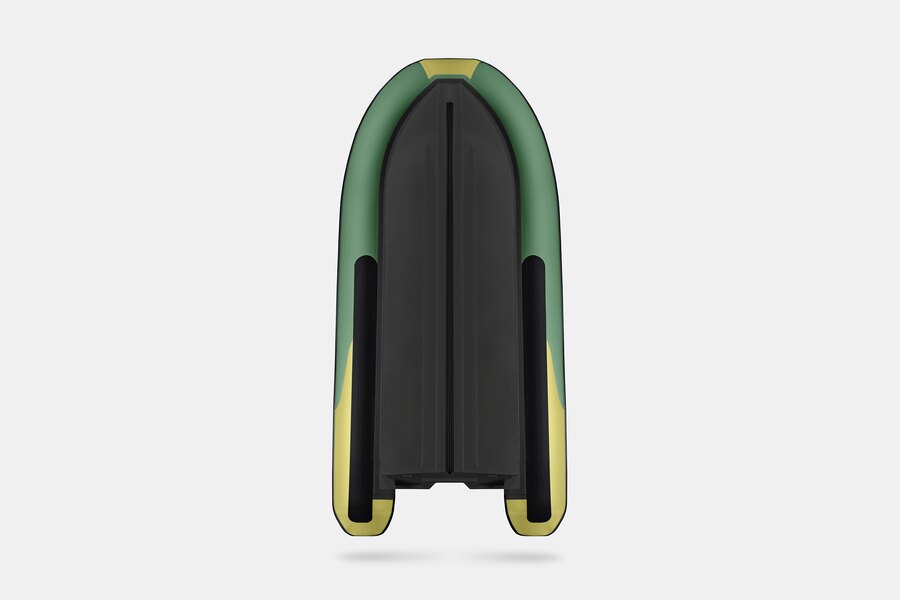 Килевая моторная лодка GLADIATOR RIB380AL зелено-оливковкового цвета со стационарным транцем под мотор до 30 л.с.