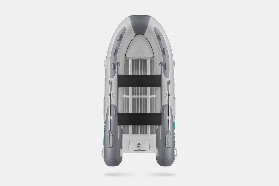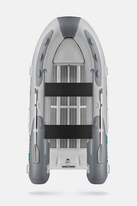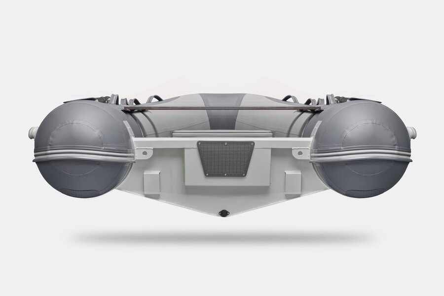 Семиместная килевая моторная лодка GLADIATOR RIB420AL светло-темносерого цвета со стационарным транцем под мотор до 40 л.с.