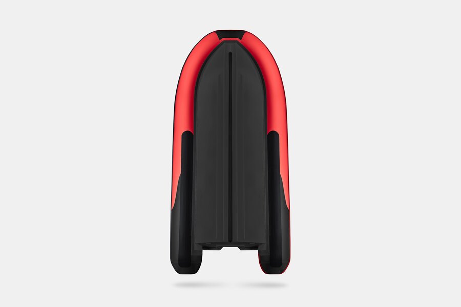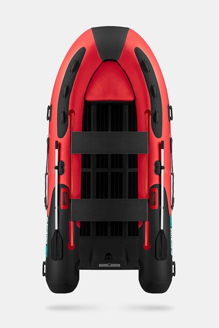 Семиместная килевая моторная лодка GLADIATOR RIB420AL красно-черного цвета со стационарным транцем под мотор до 40 л.с.