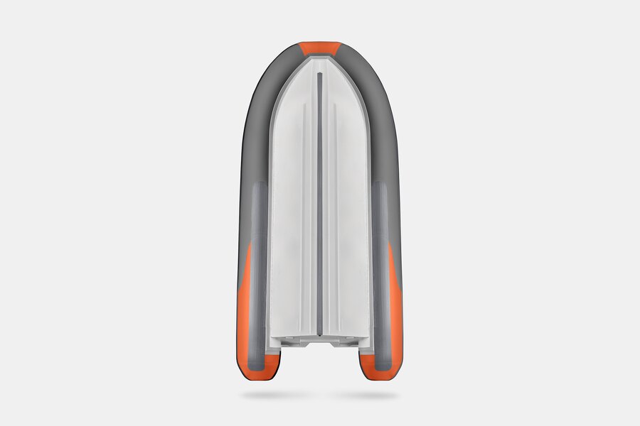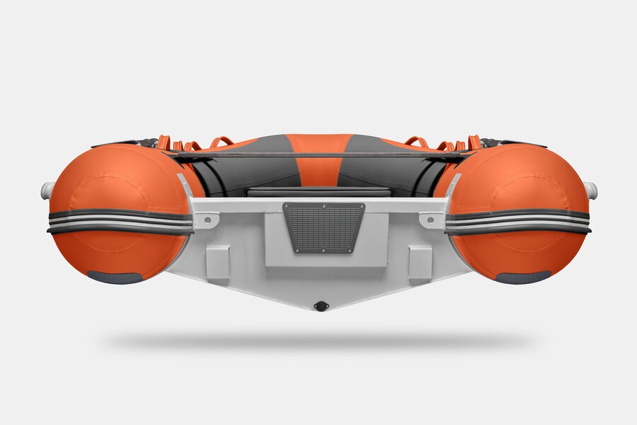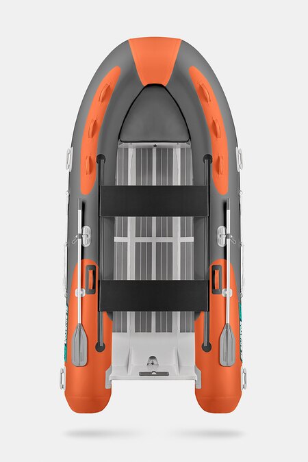 Семиместная килевая моторная лодка GLADIATOR RIB420AL оранжево-темносерого цвета со стационарным транцем под мотор до 40 л.с.