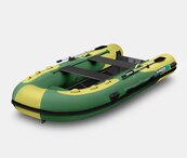 Семиместная килевая моторная лодка GLADIATOR RIB420AL зелено-оливковкового цвета со стационарным транцем под мотор до 40 л.с.