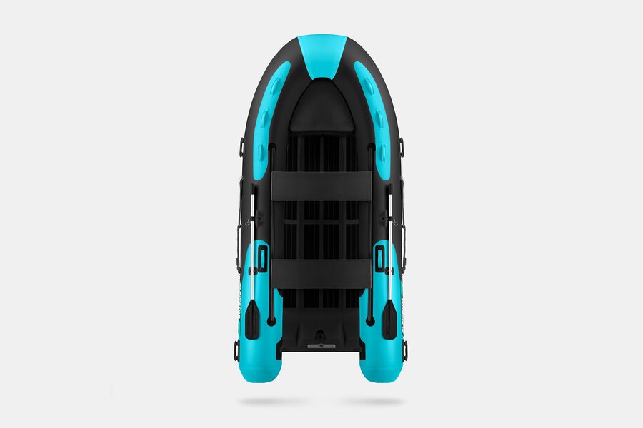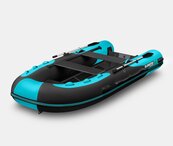 Семиместная килевая моторная лодка GLADIATOR RIB420AL черно-бирюзового цвета со стационарным транцем под мотор до 40 л.с.