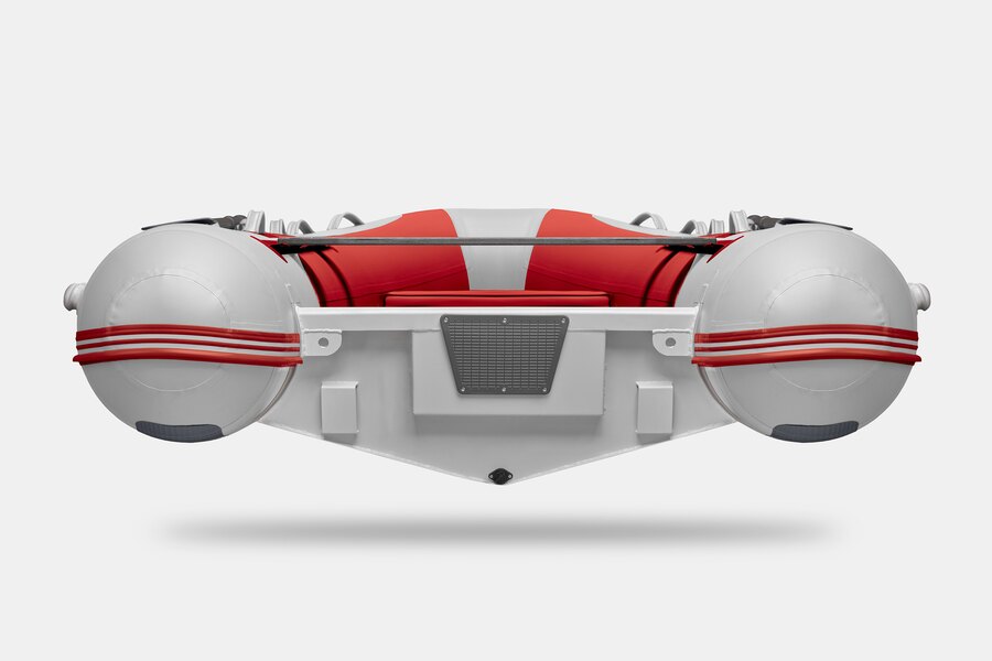 Семиместная килевая моторная лодка GLADIATOR RIB420AL красно-белого цвета со стационарным транцем под мотор до 40 л.с.