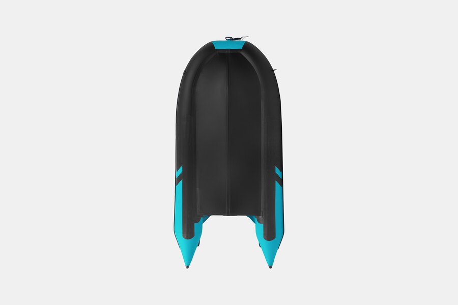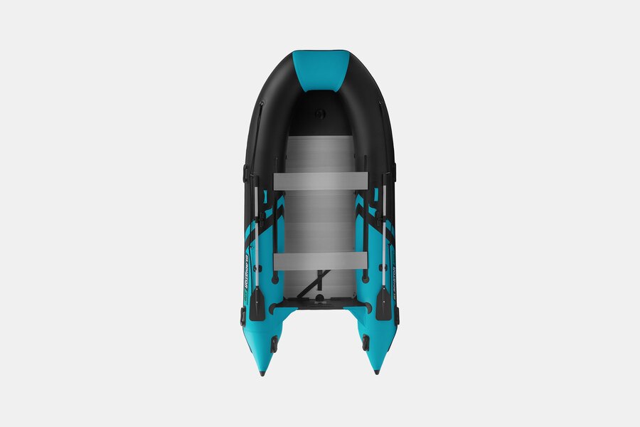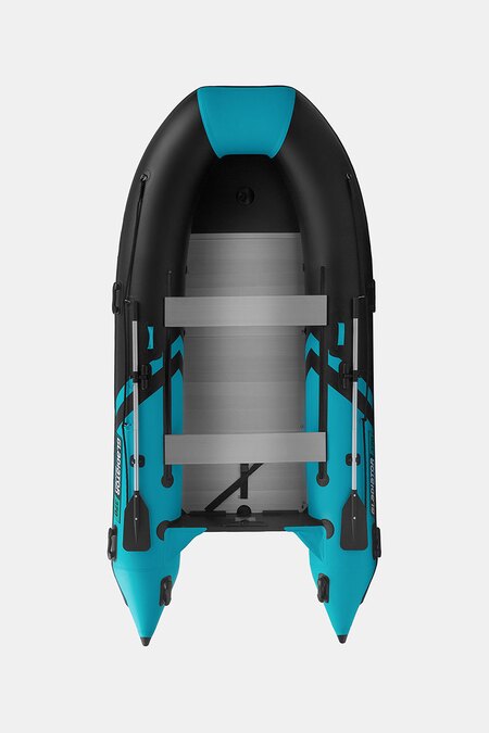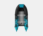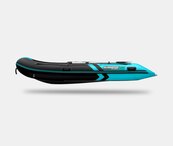 Пятиместная килевая моторная лодка GLADIATOR B370 черно-бирюзового цвета со стационарным транцем под мотор до 30 л.с.