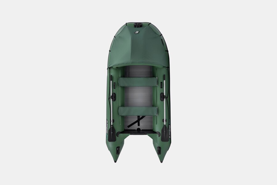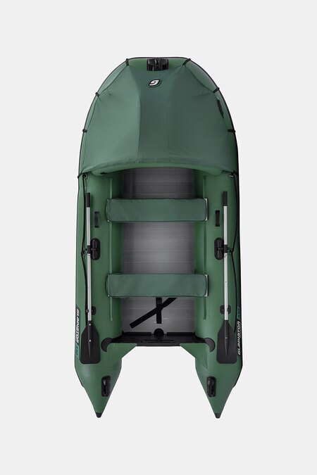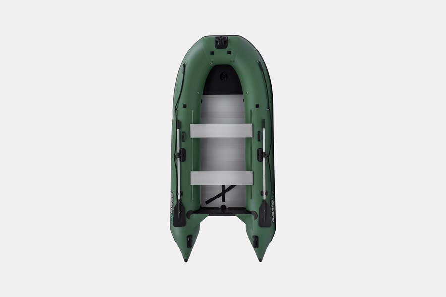 Четырехместная килевая моторная лодка GLADIATOR C330AL зеленого цвета со стационарным транцем под мотор до 15 л.с.