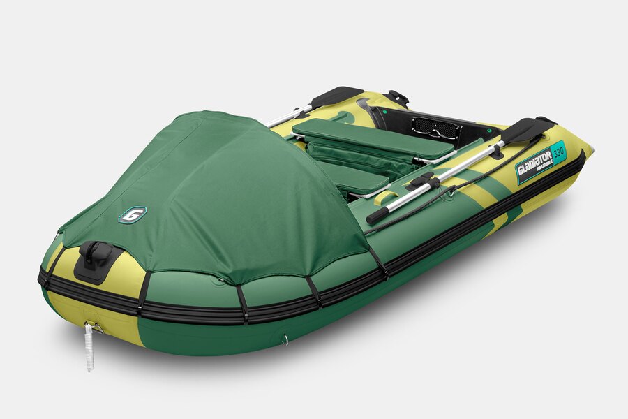 Используемый для лодок GLADIATOR материал состоит из пятислойного армированного ПВХ. Данный материал представляет собой синтетическую плетеную основу с полимерным покрытием, а использование композиционного поливинилхлорида и пластифицирующих добавок обеспечивает высокую прочность и устойчивость к порезам и проколам. Швы выполнены по уникальной технологии — каждый шов собран «внахлест», прошит и проклеен специальным клеем для ПВХ изделий. Каждый шов усилен проклейкой в четыре слоя из полос специальной ткани для придания швам эластичности, максимальной прочности и долговечности.