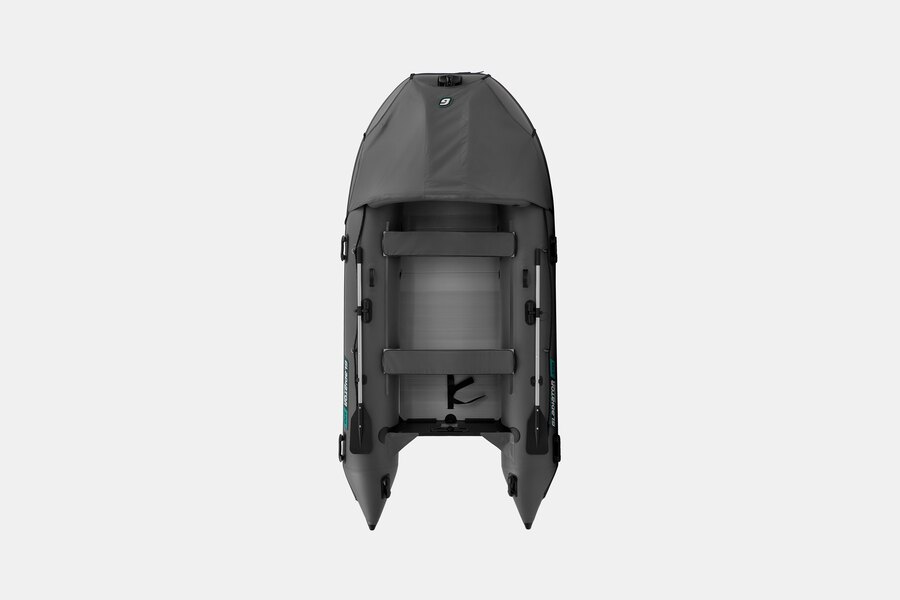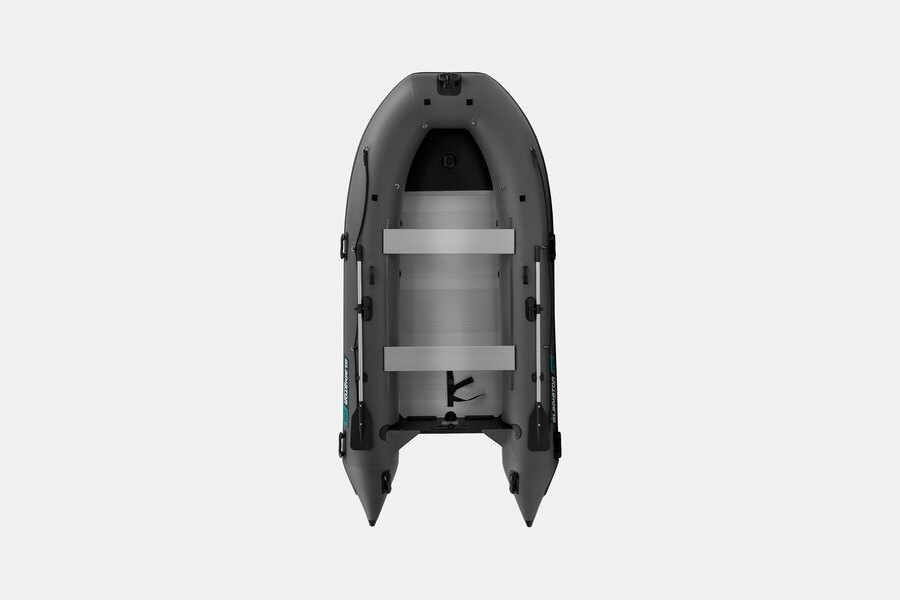 Пятиместная килевая моторная лодка GLADIATOR C370AL темносерого цвета со стационарным транцем под мотор до 30 л.с.