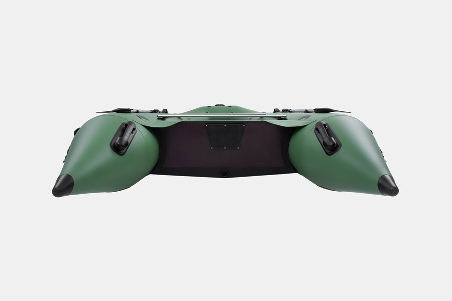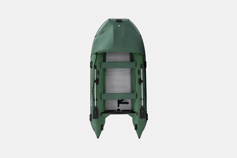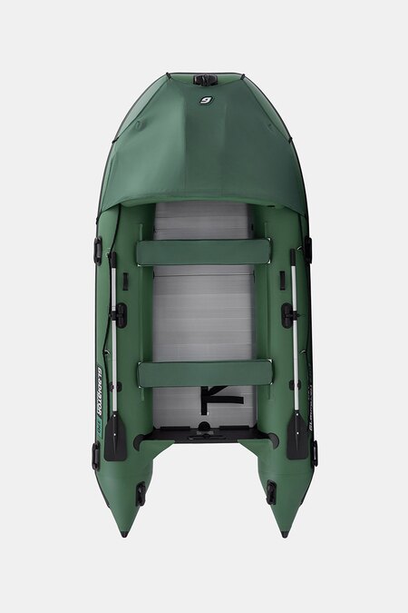 Пятиместная килевая моторная лодка GLADIATOR C370AL зеленого цвета со стационарным транцем под мотор до 30 л.с.