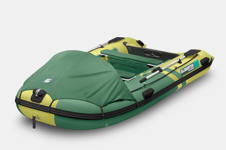 Пятиместная килевая моторная лодка GLADIATOR C370AL зелено-оливкового цвета со стационарным транцем под мотор до 30 л.с.