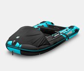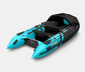 Пятиместная килевая моторная лодка GLADIATOR C370AL черно-бирюзового цвета со стационарным транцем под мотор до 30 л.с.