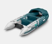 Пятиместная килевая моторная лодка GLADIATOR C370AL морской зелено-белого цвета со стационарным транцем под мотор до 30 л.с.
