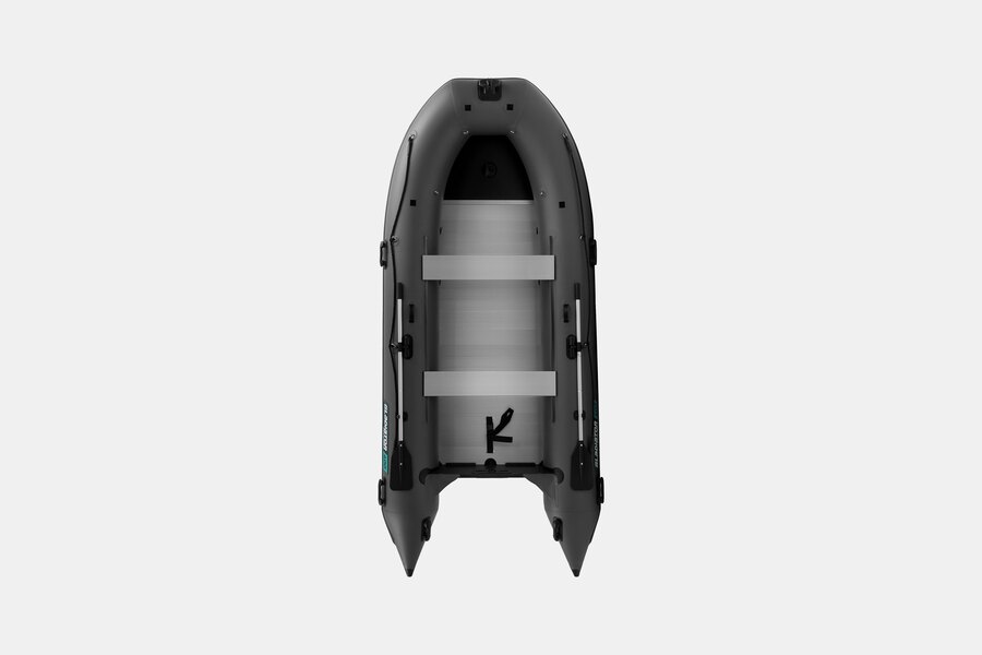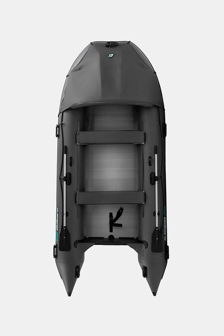 Шестиместная килевая моторная лодка GLADIATOR C400AL темносерого цвета со стационарным транцем под мотор до 30 л.с.