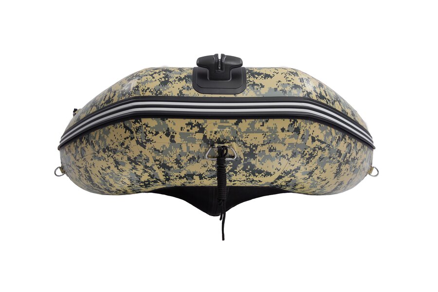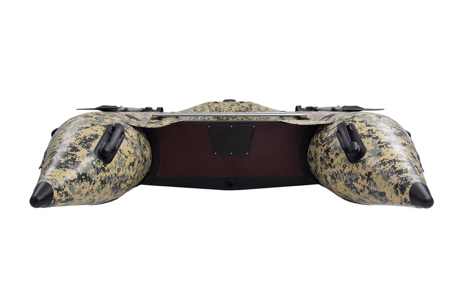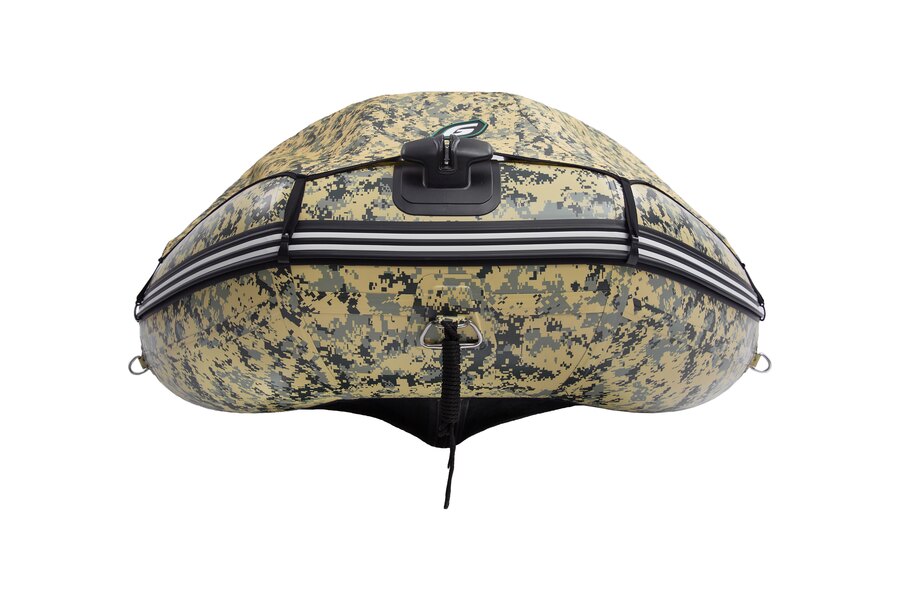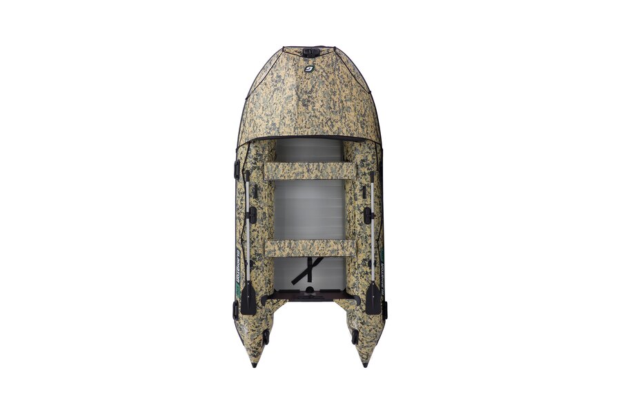 Пятиместная килевая моторная лодка GLADIATOR C370AL камуфляжного цвета со стационарным транцем под мотор до 30 л.с.