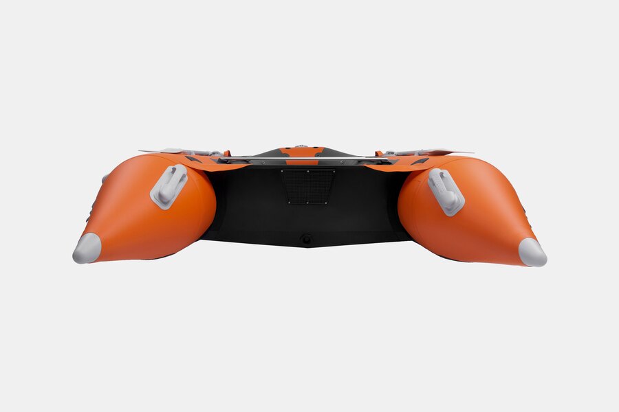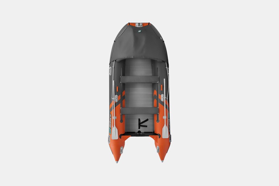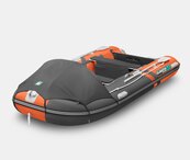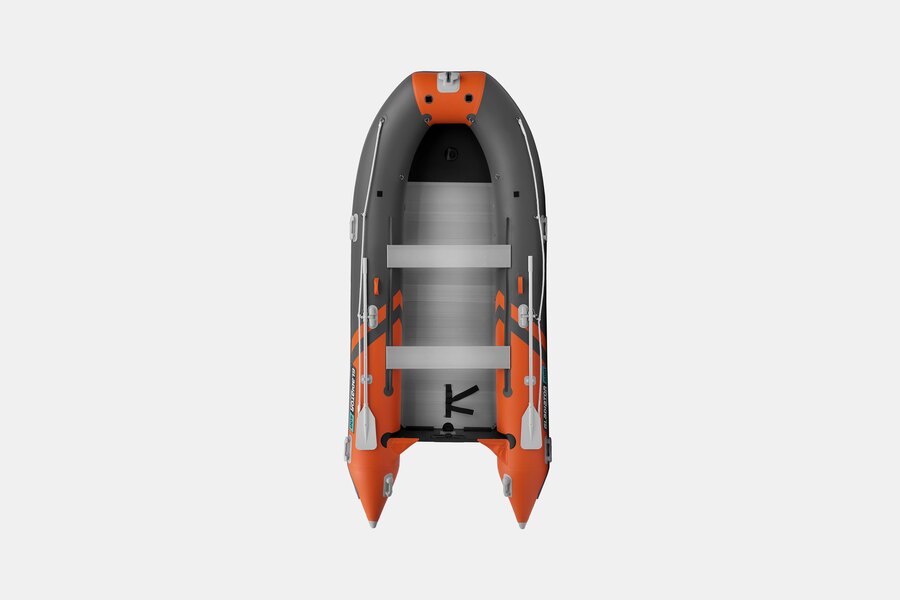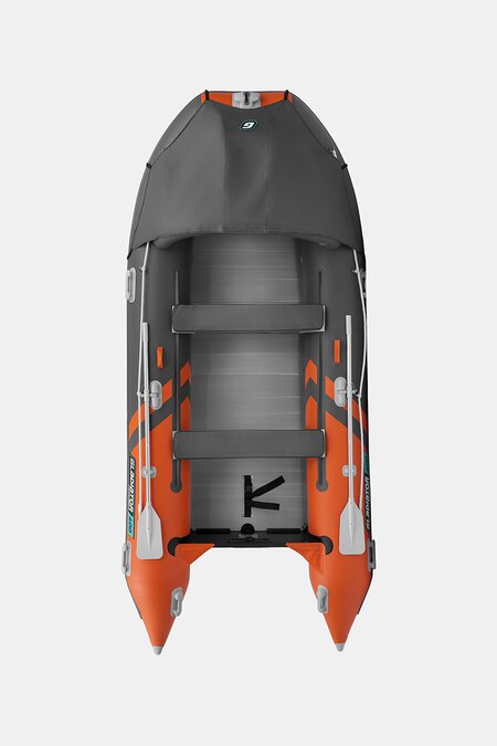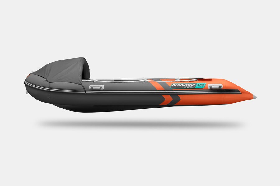 Шестиместная килевая моторная лодка GLADIATOR C400AL оранжево-темносерого цвета со стационарным транцем под мотор до 30 л.с.