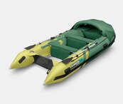 Шестиместная килевая моторная лодка GLADIATOR C400AL зелено-оливкового цвета со стационарным транцем под мотор до 30 л.с.
