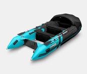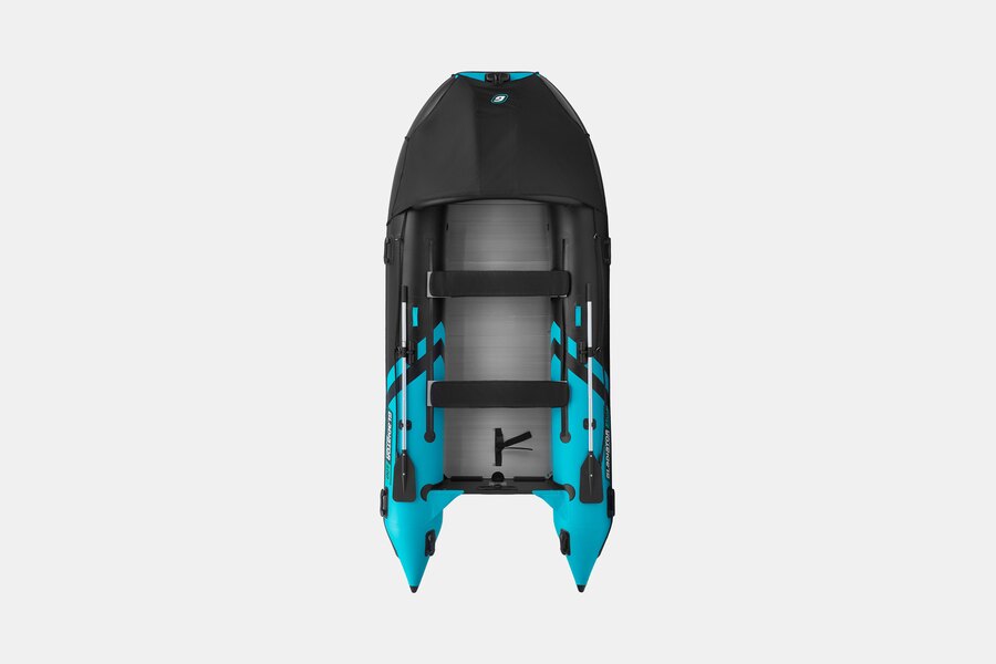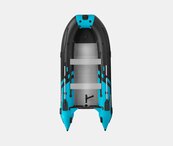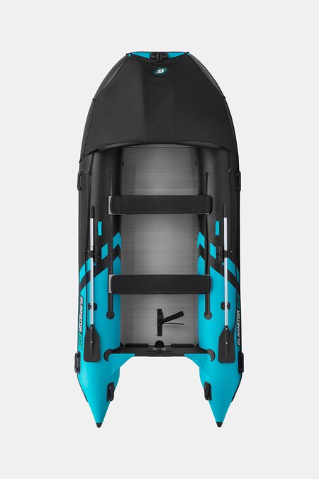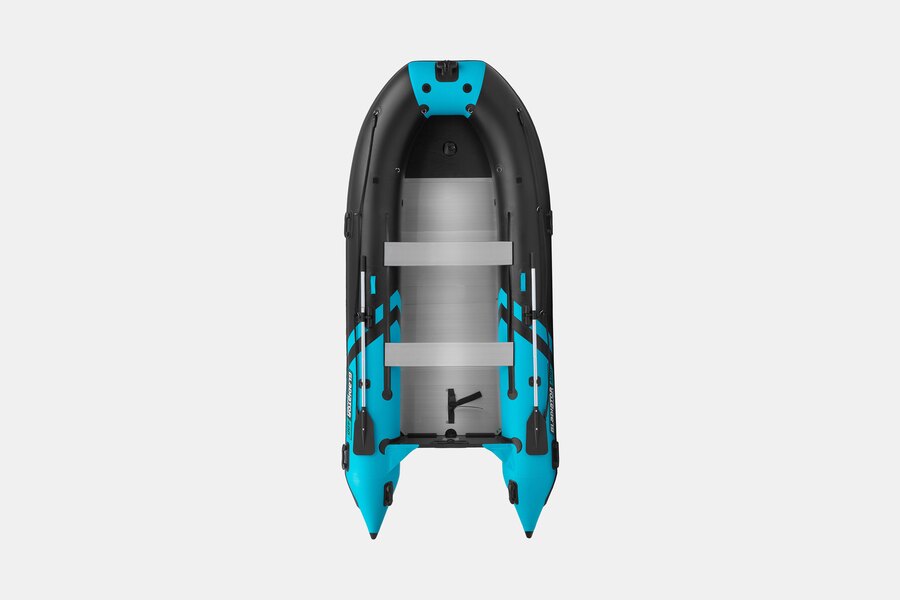 Шестиместная килевая моторная лодка GLADIATOR C400AL черно-бирюзового цвета со стационарным транцем под мотор до 30 л.с.