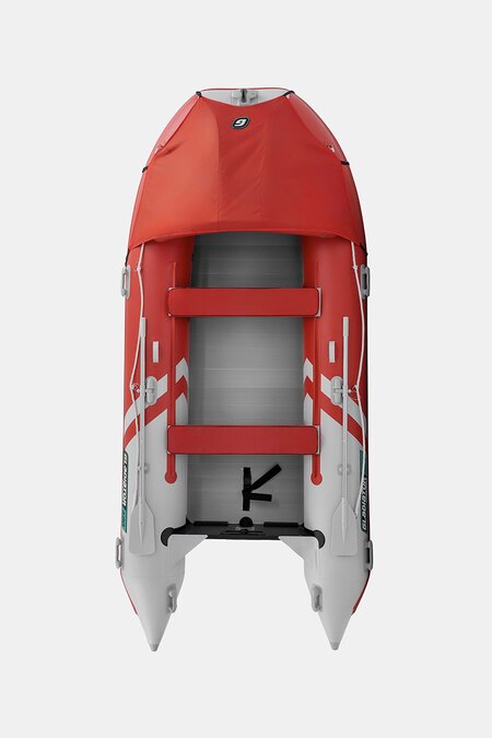 Шестиместная килевая моторная лодка GLADIATOR C400AL красно-белого цвета со стационарным транцем под мотор до 30 л.с.