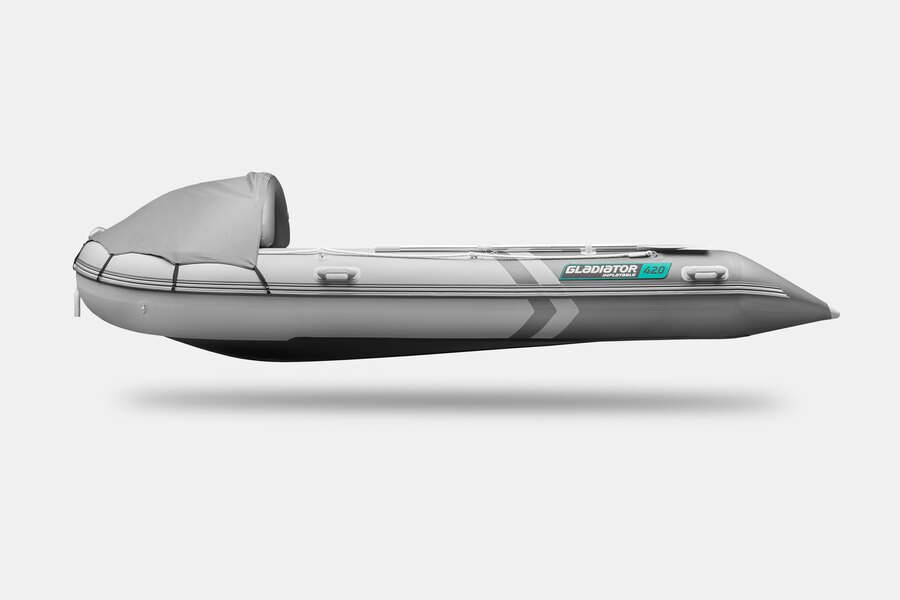 Семиместная килевая моторная лодка GLADIATOR C420AL светло-темносерого цвета со стационарным транцем под мотор до 40 л.с.