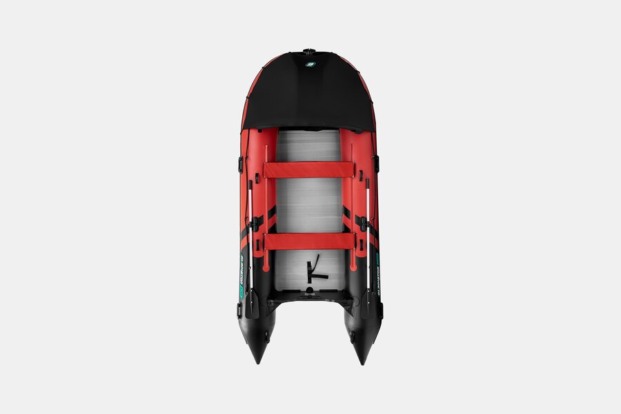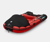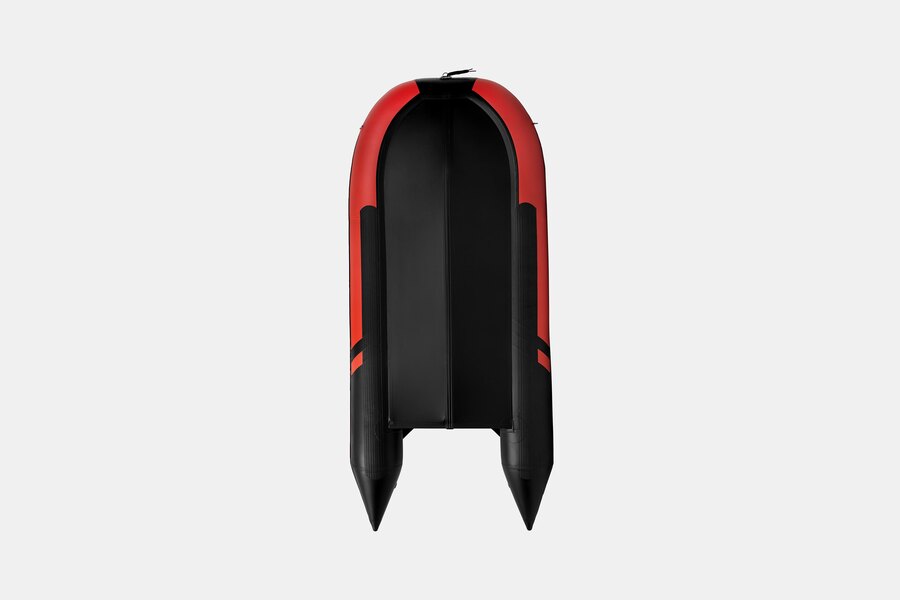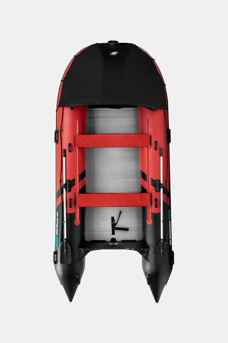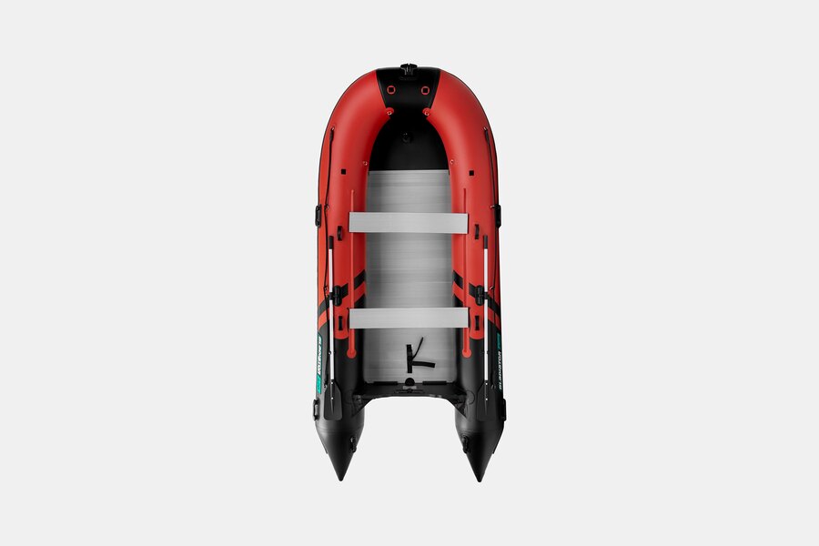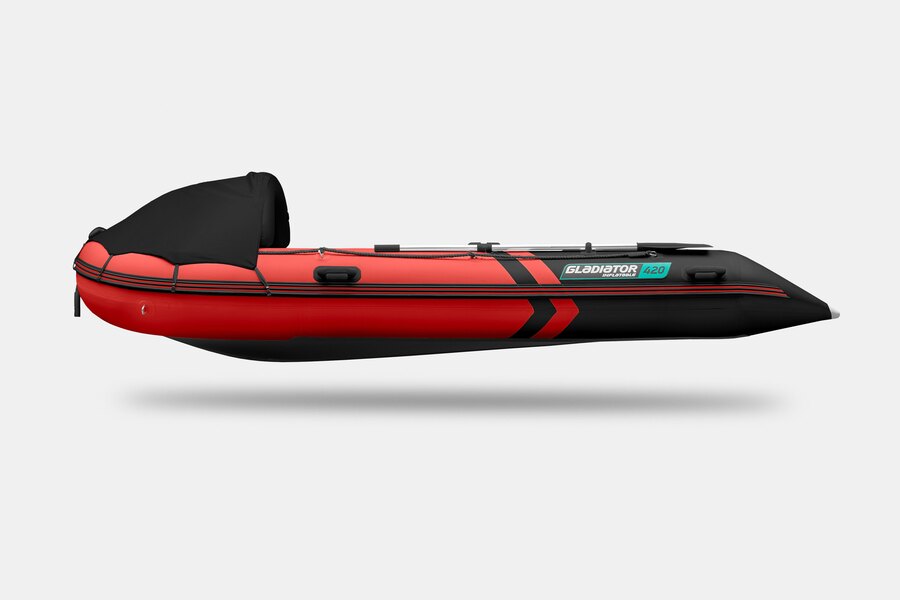 Семиместная килевая моторная лодка GLADIATOR C420AL красно-черного цвета со стационарным транцем под мотор до 40 л.с.