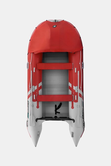 Семиместная килевая моторная лодка GLADIATOR C420AL красно-белого цвета со стационарным транцем под мотор до 40 л.с.